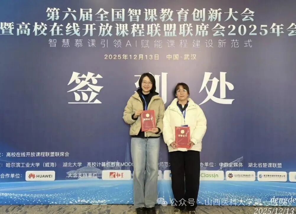 近日,由高校在线开放课程联盟联席会主办的第六届全国智课教育创新大会暨高校在线开放课程联盟联席会2025年会在湖北武汉举办,山西医科大学第一临床医学院中医学教研室主任郭洪波申报的《AI 赋能〈中医学〉课程个性化传承与创新实践》获评“智慧在线开放课程案例”;皮肤性病学教研室邓磷君申报的《知识图谱与模拟诊疗双轮驱动,构建皮肤科智慧课堂新范式》被评为“智慧课程/课堂优秀案例”。中医学教研室任壹乐与皮肤性病学教研室邓磷君一同参会,积极参与学术交流与教学经验分享。