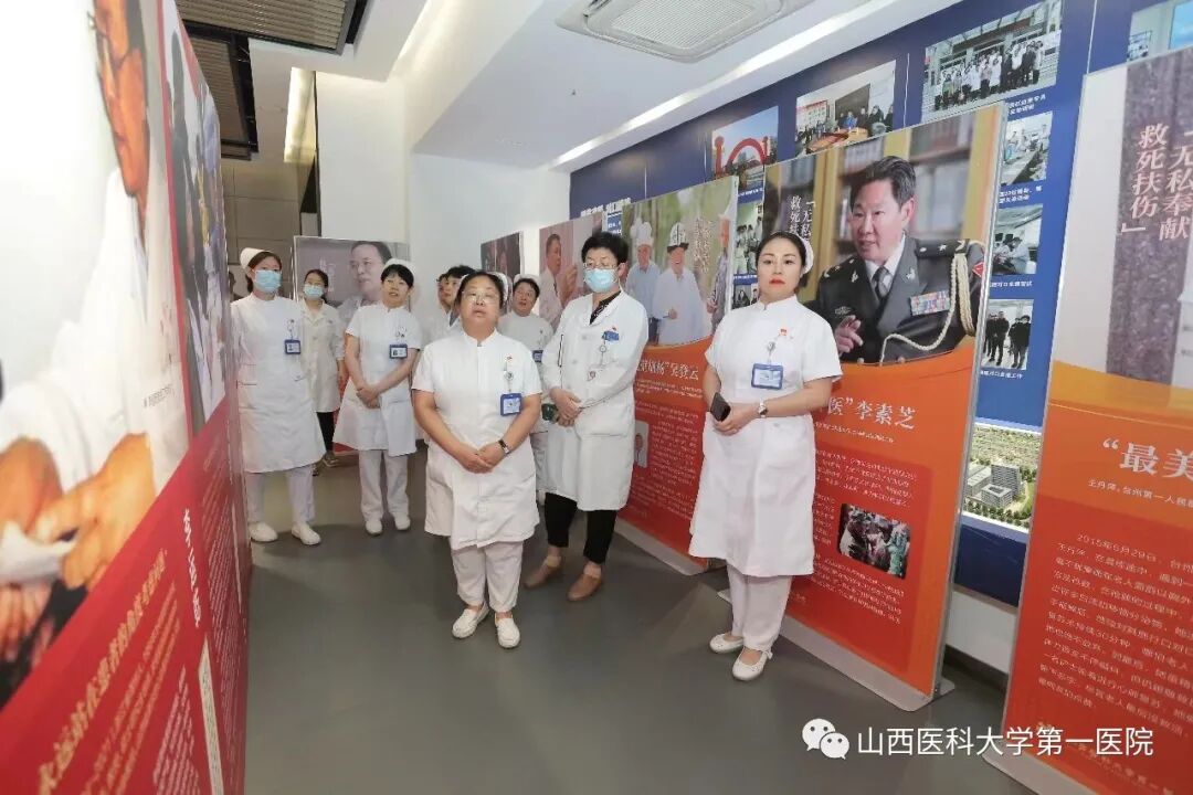 8月10日,山西医科大学第一医院门诊党支部书记王小琴带领支部全体党员及入党积极分子参观了医院举办的“党风清正 院风清朗 医风清新 行风清明”全面建设清廉医院主题展览。