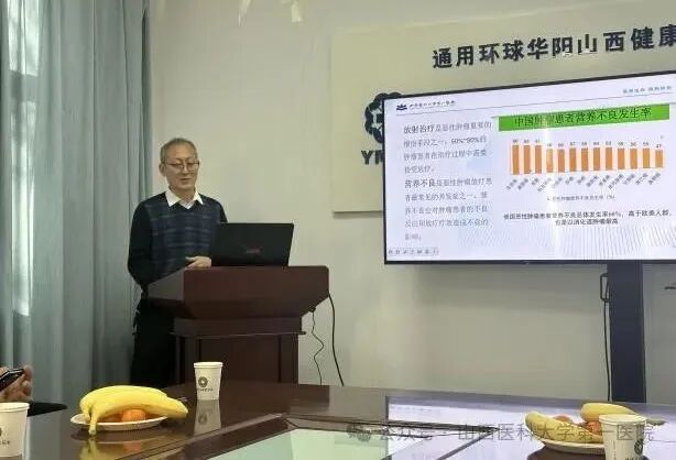 12月1日,山西医科大学第一医院放疗科专家团队赴阳泉市煤业集团总医院开展山西省卫生健康委员会基层适宜性技术推广应用项目“肿瘤全病程营养诊断和干预技术”培训会,阳泉市煤业集团总医院肿瘤科主任温化冰及科室骨干医护人员参会。