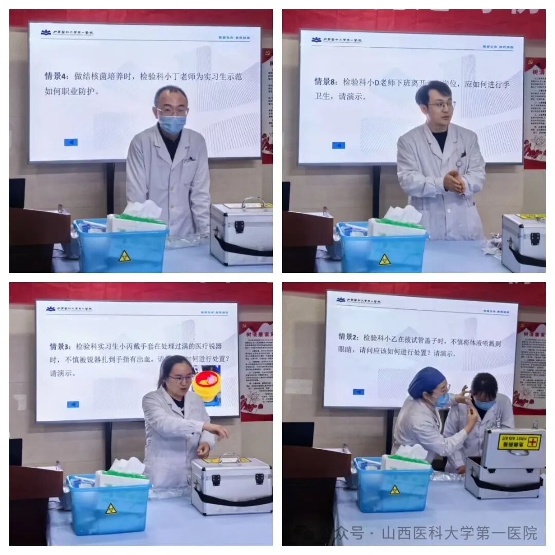 3月14日,山西医科大学第一医院感染管理科对医学检验科进行了院感相关知识培训,包括微生物室环境卫生学监测系统正确使用和工作人员职业暴露应急演练。