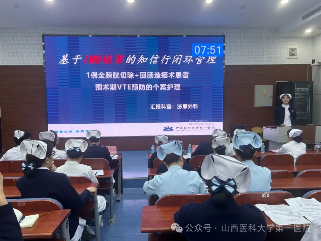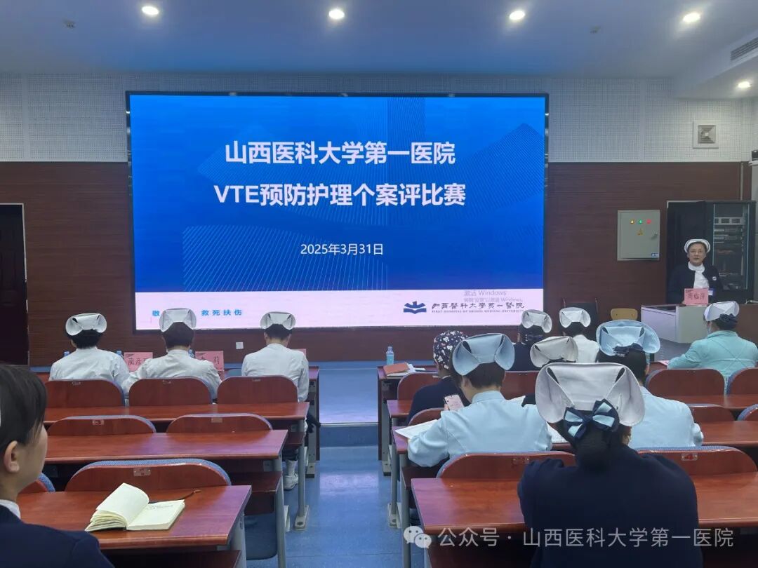 为深化静脉血栓栓塞症(VTE)预防护理标准化建设,提升护理质量,3月31日,山西医科大学第一医院在护校规培教室举行了VTE预防护理个案评比赛决赛,护理部主任商临萍,副主任李育玲、李莉、唐珊,护士长蔺彦丽,护理部刘焘丽组成专家评委。比赛由VTE防控护理专业小组组长、骨科护士长赵爱玲主持。