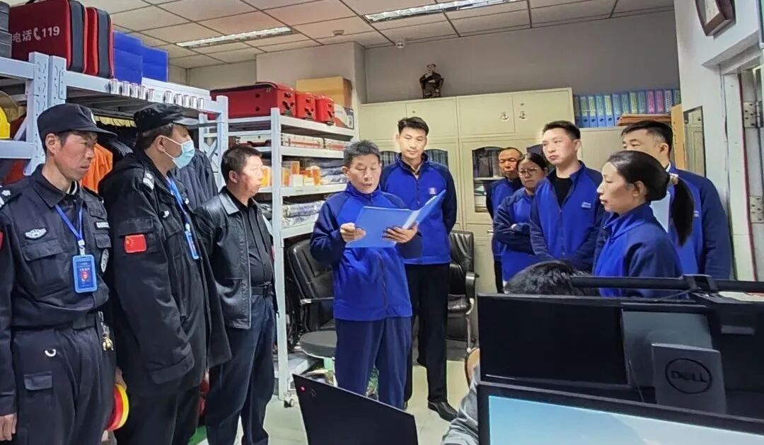演练伊始,任贵增副科长进行详细部署,清点人数及消防器材,下达任务、明确分工。随着消防报警主机火警声响起,演练正式开始,消防控制室值班人员立即通知巡查人员前去现场确认,得知设备层西侧“起火”,值班人员当即向指挥员报告,微型消防站消防员穿戴专业消防装备和保安应急小分队迅速响应奔赴现场,保安应急队员拉起警戒带、设立安全区,消防员动作娴熟地使用灭火器、连接水带、操控水枪压制火势,队员们紧密配合及时控制了火势蔓延。