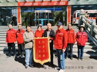 4月2日,失主王女士带着一面锦旗来到山西医科大学第一医院,当面对拾金不昧的保洁人员李宗卫以及相关工作人员表示感谢。