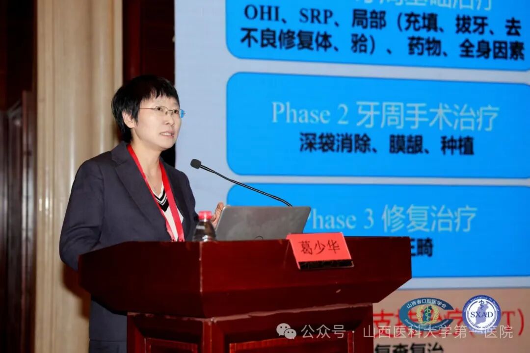 学术会议环节中,北京大学口腔医院牙周病学专家孟焕新分享了“种植体周病的防治决策”,通过多年在植体周病的科研和大量翔实的病例深入剖析了种植体周围疾病的发病机制、风险评估及综合治疗策略,为临床实践提供了科学依据。山东大学口腔医院院长葛少华以“正畸治疗中的牙周风险管控和处理策略”为题,结合临床病例解析了牙周与正畸协同治疗的关键点,围绕牙周病学以及多学科协作的焦点难点进行了讲解,为全省牙周病学工作者带来了一场高水平的学术盛宴。