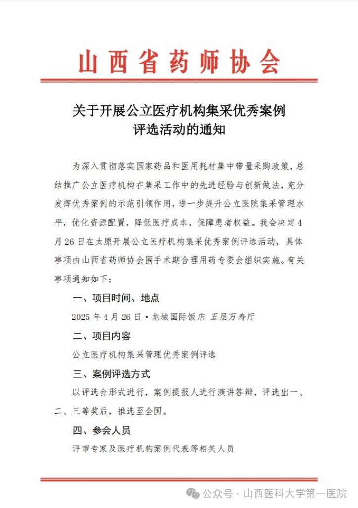 山西医科大学第一医院药学部荣获山西省公立医疗机构集采优秀案例三等奖