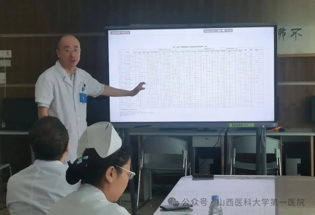 为提升病案首页质量,更准确用于国家三级公立医院绩效考核、DRGs医保付费及医院质量监测系统数据上报,6月23日,山西医科大学第一医院骨科邀请到病案统计室负责人齐昊一行4人开展了病案质量管理专题培训,旨在提升病案书写准确率,骨科全体医师和护士长参加并积极交流讨论。