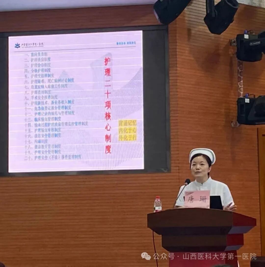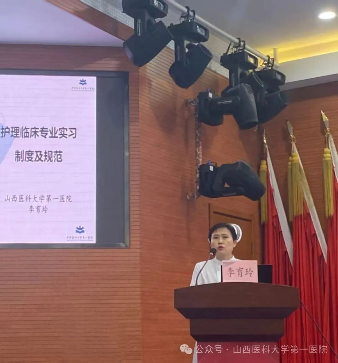 韩清华副院长对参加培训的护理实习生表示热烈欢迎,并以“敬畏生命、救死扶伤”院训为引,介绍了医院与护理团队的发展概况。她讲到,护理实习生是护理队伍中的新生力量,临床实习是从“学子”到“白衣天使”的蜕变,强调了临床实践对护理人才培养的重要性,勉励大家在实习期间扎实学习、锤炼技能、恪守职责。