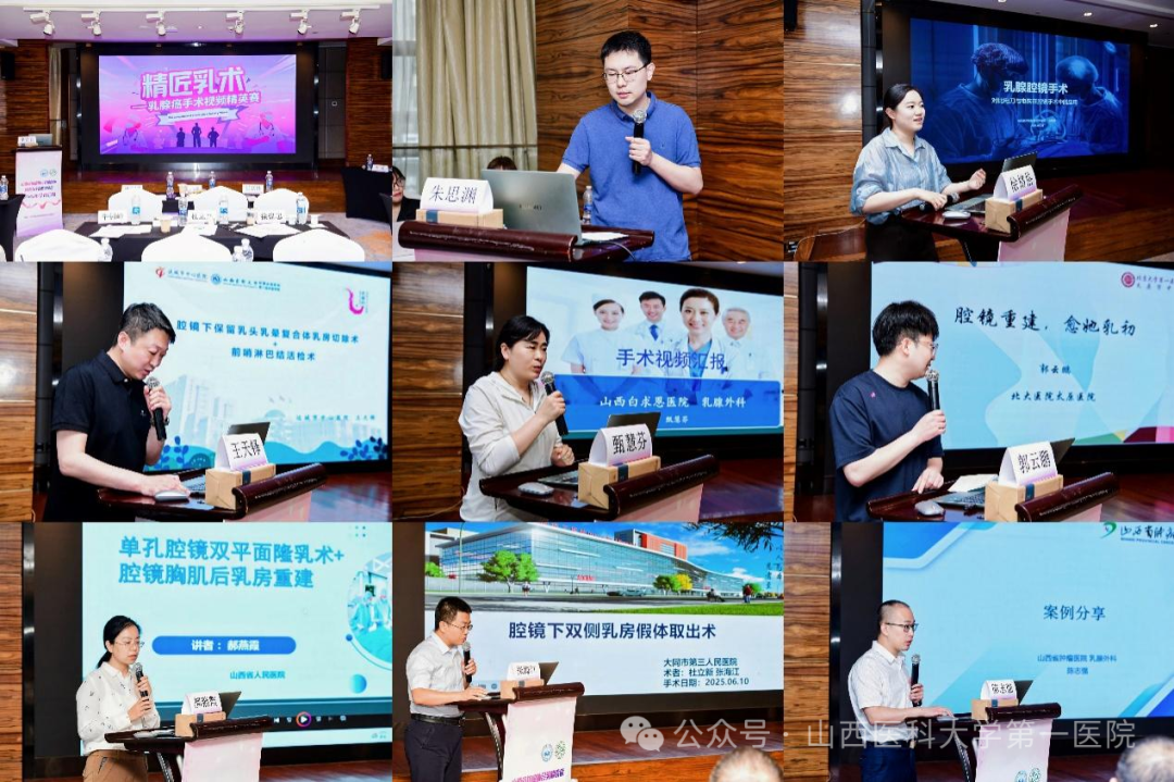在学术专题环节,国内乳腺领域专家聚焦乳腺疾病腔镜治疗关键技术与研究进展带来多场精彩报告。四川大学华西医院杜正贵分享了“乳腺癌腔镜乳房重建华西经验”,解析腔镜技术在乳房重建中的应用;广东省人民医院廖宁作了“乳腺癌机器人乳房重建”专题报告,详细介绍了机器人辅助手术优势及应用场景,为智能医疗赋能乳腺手术探索新路径;西安交通大学第一附属医院任予主讲“乳腺假体重建测量及并发症处理”,为假体植入重建手术筑牢安全底线;山西省人民医院席春芳梳理“2025年ASCO乳腺癌新进展”,为山西省乳腺疾病诊疗与国际前沿接轨搭建桥梁;山医大一院李云香以“PIK3CA创新靶向研发突破,重塑诊疗格局”为题,介绍了新型靶向药物研发进展,引发与会者对乳腺疾病个体化治疗的思考。