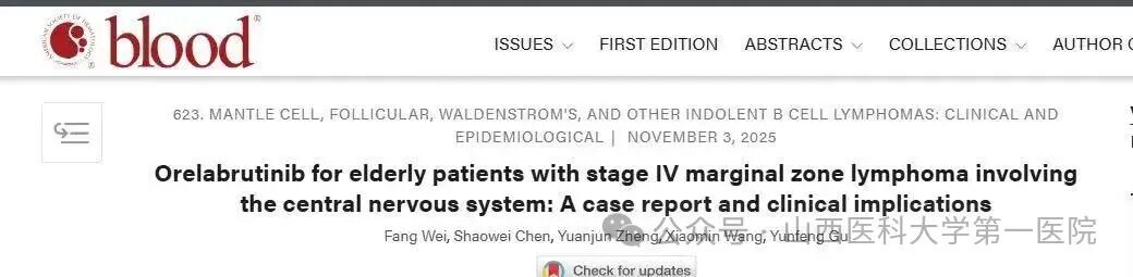 12月6日至9日,全球血液学领域规模最大、影响力最广的国际学术盛会——第67届美国血液学会(ASH)年会在美国奥兰多举行,我国学者在此次大会上展现的科研实力备受瞩目,山西医科大学第一医院血液内科魏芳主任医师团队的一项关于“中枢神经系统受累的边缘区B细胞淋巴瘤的诊断和治疗”的罕见病例报道,成功入选本届年会,并被顶级医学期刊《BLOOD》收录。该成果为全球深入理解这一复杂、罕见淋巴瘤的诊断路径与治疗策略提供了宝贵的临床见解,彰显了医院在疑难危重血液病诊治方面的扎实功底与创新能力。
