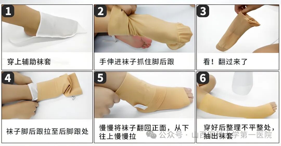 晨起穿戴(黄金时间),这个时候腿部还没肿胀,穿着最有效。
