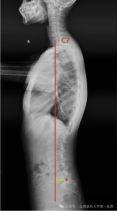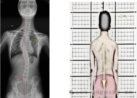 C7垂线是C7椎体中心垂直向下的直线,与X线片垂直边缘平行。通过测量C7垂直线与S1(CSVL)中心垂线之间的横向距离,可以确定冠状面的平衡。C7PL-CSVL代表C7PL和CSVL的水平间距。C7PL位于CSVL右侧为正值,左侧为负值,C7PL-CSVL>2cm定义为冠状面失衡。
