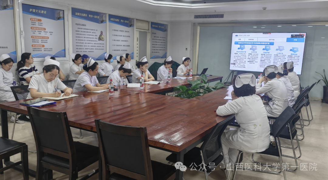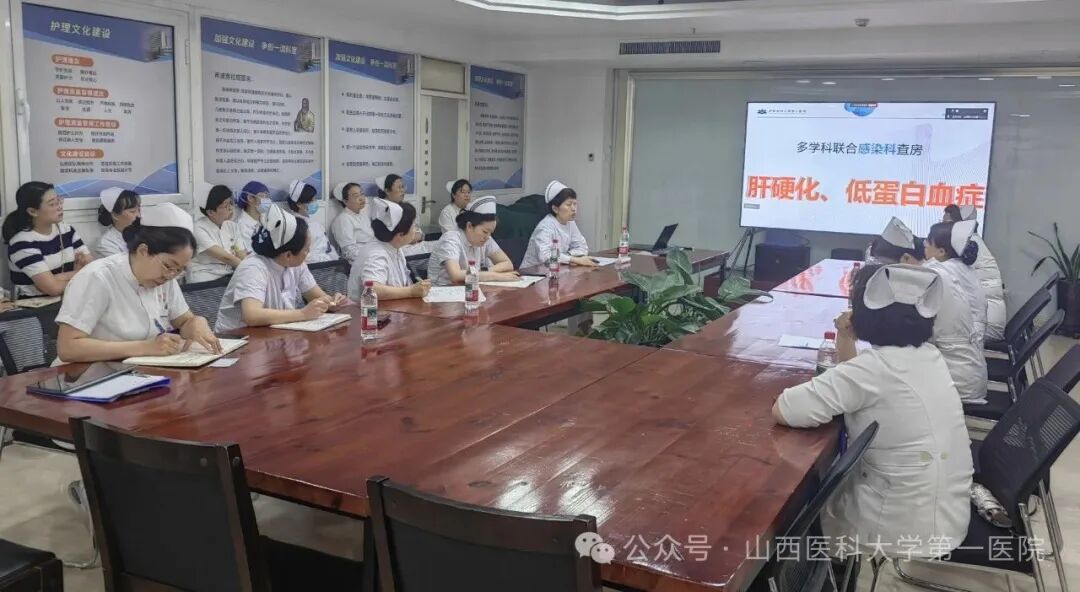 为解决危重症疑难患者护理难题,发挥多学科综合力量,提高护理水平及质量,保障患者安全,5月20日,山西医科大学第一医院胃肠外科在示教室开展了多学科(MDT)联合护理查房,护理部副主任唐珊、风湿免疫科、内分泌科、感染病科、骨科、精神卫生科的护理专家及骨干参加。