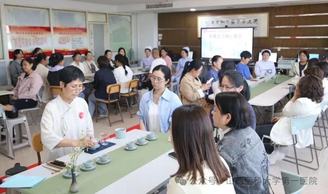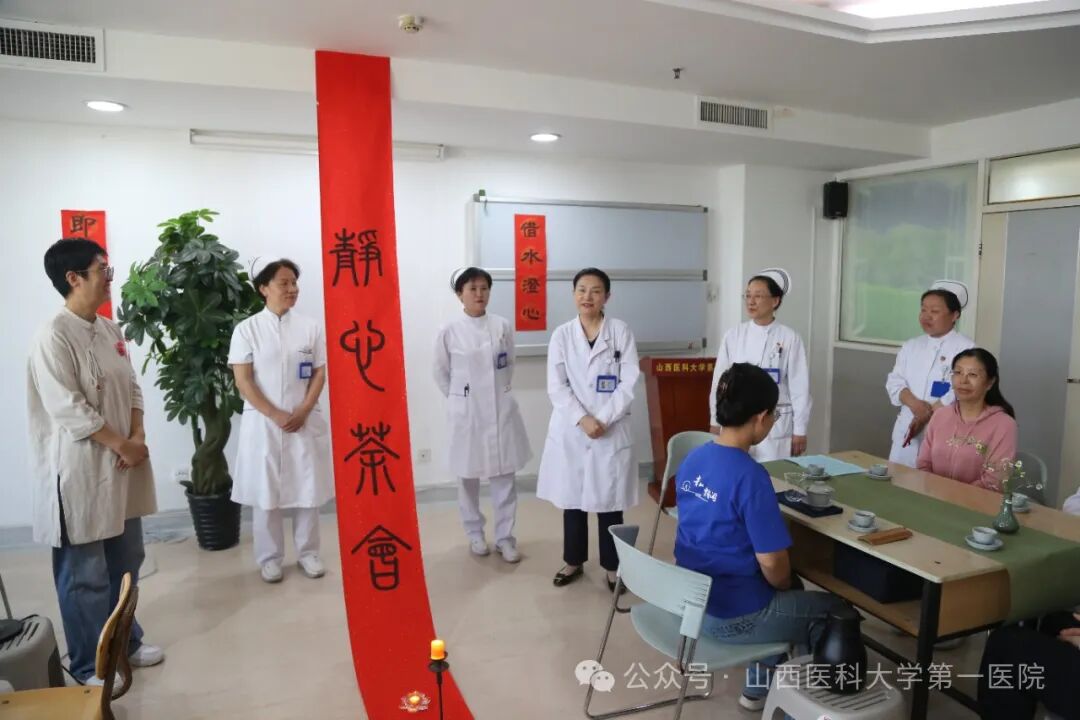 4月24日,山西医科大学第一医院护理部以“静心茶语,守护生命之光”为主题举办了“天使静心茶会”,山西省中医药研究院心理治疗师赵淑琴、静心茶社专业茶艺师团队及60余名护士参加。